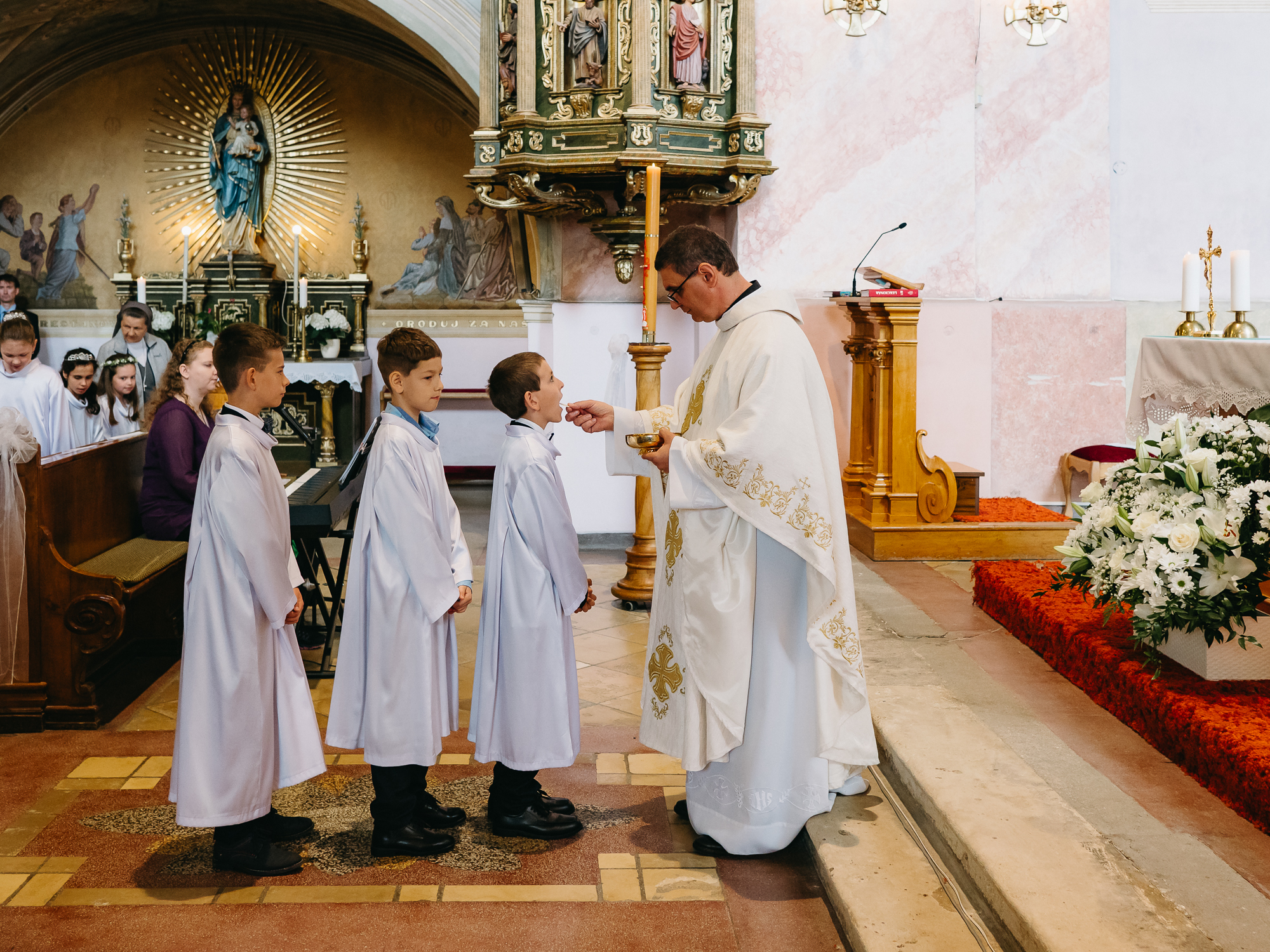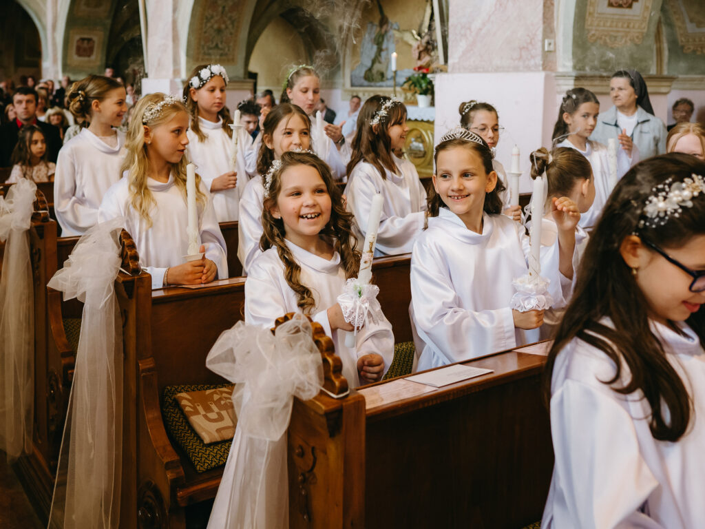 Fotografovanie cirkevných slávností (prvé sväté prijímanie, birmovka a ďalšie udalosti) realizujem s rešpektom k priebehu liturgie a priestoru kostola. Zabezpečujem diskrétnu fotodokumentáciu obradu, spoločné fotografie aj individuálne portréty detí.